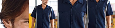 65% polyester/35% cotton • 4.25-oz. • permanent press poplin • lined two-piece collar with permanent stays and button closure • mitered front pockets with pencil division on left pocket • fade-resistant • Dickies logo on side of left pocket and bottom of button placket • industrial laundry friendly • Sizes: S-3XL